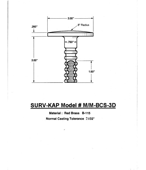 3" Dome Cast Brass Monument Marker w/Corrugated Stem.