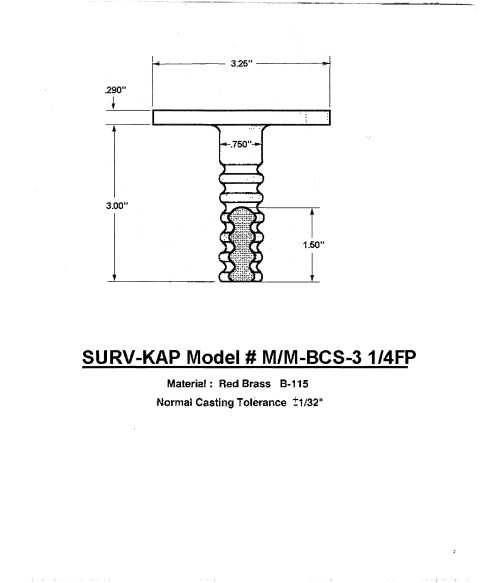 3 1/4" Plain Flat Cast Brass Monument Marker w/Corrugated Stem.