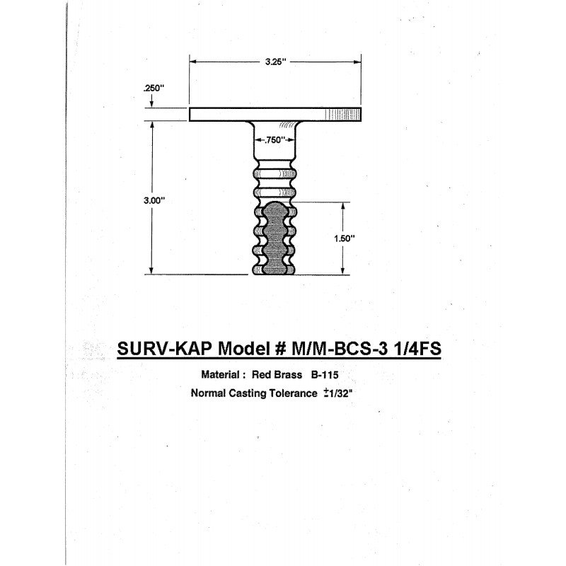 3 1/4" Flat Cast Brass Monument Marker w/Corrugated Stem (Stamped).