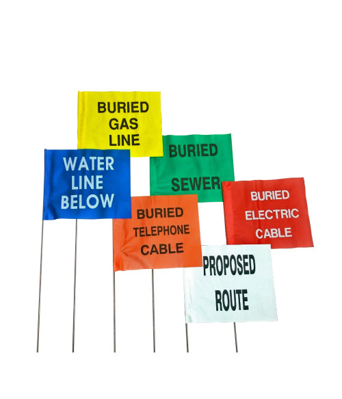 Surv-Kap marking flags are made of durable 4 mil plastic in all APWA colors. We have a broad selection of color choices and printed legends, all on high-quality PVC material and printed with long-lasting inks.