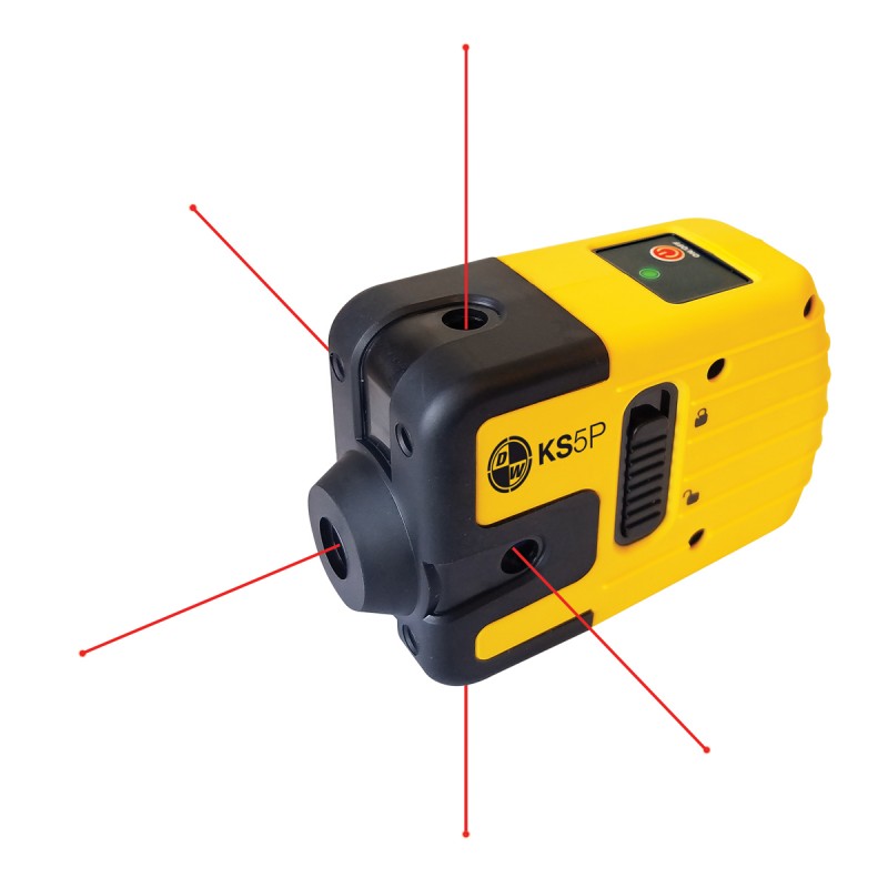 The simple to use KS 5P is a versatile laser tool ideal for one person leveling, plumb, layout and squaring. Projects five 90º points for a wide range of applications.
